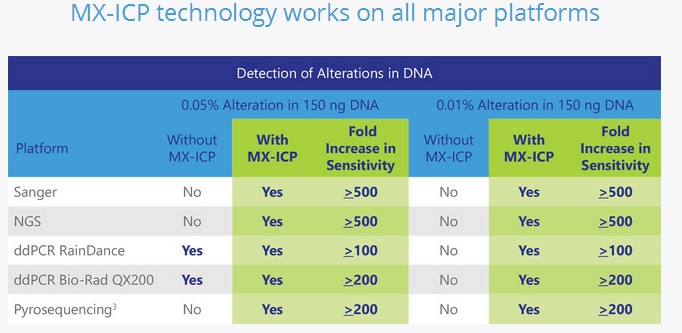 TBIO公司的ICEme™突變富集試劑盒就是這樣一款革命性地產(chǎn)品,其超高靈敏度允許它可對任何組織或液體活體樣本包括血液、血漿和尿液等樣本進行精準的突變檢測,并且?guī)缀踹m用于所有的下游檢測平臺(sanger測序、二代測序、ddPCR等)。其核心檢測技術(shù)ICE COLD-PCR與現(xiàn)有的突變檢測方法相比,對突變基因的富集能力更強,對突變基因可以進行高達500倍的富集,突變檢測靈敏度低至0.01%,使低水平突變檢測輕松實現(xiàn),特別適合液體活檢,成功做到了對病人的精確監(jiān)控和對癌癥亞群的精細分層。毫不夸張地說,該技術(shù)確保了所有的突變都被識別,包括罕見的突變和之前未被發(fā)現(xiàn)的新突變。